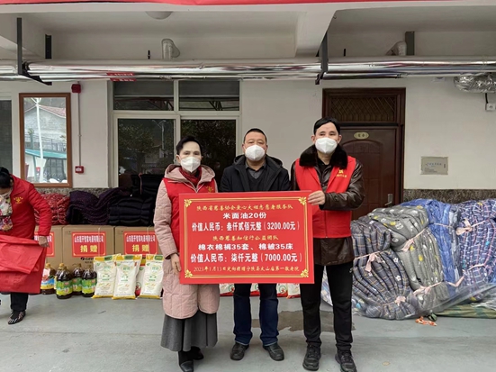陕西省慈善协会爱心大姐志愿者服务队、陕西慈善知信行公益团队联合捐赠价值3200元的米面油20份,价值7000元的棉衣棉裤35套、棉被35床,为太山庙第一敬老院的老人们送去新春祝福。