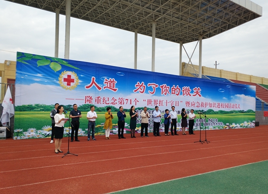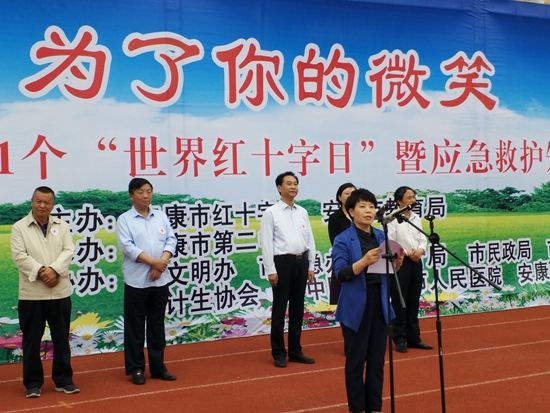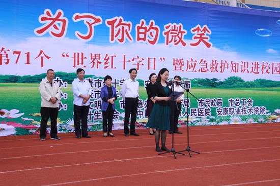 2018年5月8日,安康市365体育在哪下载_365bet365用址_365_体育投注英超和欧冠、安康市教育局联合在安康市第二中学隆重举行“人道,为了你的微笑”――纪念第71个“世界红十字日”暨应急救护知识进校园活动。安康市政府副市长、市365体育在哪下载_365bet365用址_365_体育投注英超和欧冠会长杨淼同志,市政协副主席黄骁勇同志,市人大常委会教科文卫工委副主任刘学强同志,市政府副秘书长谢奎同志以及市文明办、应急办、教育、卫计、民政、总工会等部门负责人;县区365体育在哪下载_365bet365用址_365_体育投注英超和欧冠负责人;红十字志愿服务队代表及安康市第二中学全体师生3000余人参加了本次活动,活动由安康市365体育在哪下载_365bet365用址_365_体育投注英超和欧冠常务副会长鲁琍主持。