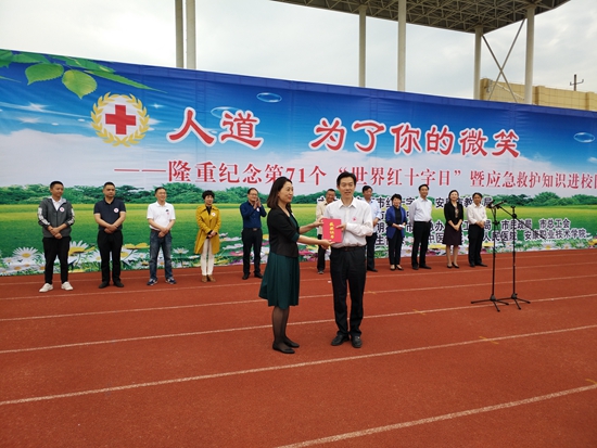 安康市政府副市长、市365体育在哪下载_365bet365用址_365_体育投注英超和欧冠会长杨淼在讲话中指出:一要实践育人全面发展。全市各级教育部门及学校要把应急救护知识进校园、红十字志愿服务等工作与素质教育、校园文化建设和德育工作有机结合起来,在校内外通过救死扶伤、扶危济困、敬老助残、助人为乐等活动,让同学们真正懂得分辨善与恶、美与丑,培养爱心、陶冶情操,形成健全人格。二要亲身躬行获得成长。同学们的视野不能仅仅局限于课堂之内,有广阔的世界等待他们去探索、去发现。希望他们用微笑传递愉悦与友善,用行动阐释人道与互助的理念。三要主动作为开拓创新。红十字是一种精神,更是一面旗帜。全市各级365体育在哪下载_365bet365用址_365_体育投注英超和欧冠要秉承多年来形成的优良作风,宣传动员人道力量,主动融入加快西北生态经济强市建设大局,在缓解社会矛盾、保障和改善民生、加强和创新社会治理、建设健康安康等方面多积尺寸之功。多为政府分忧,多为群众解难。